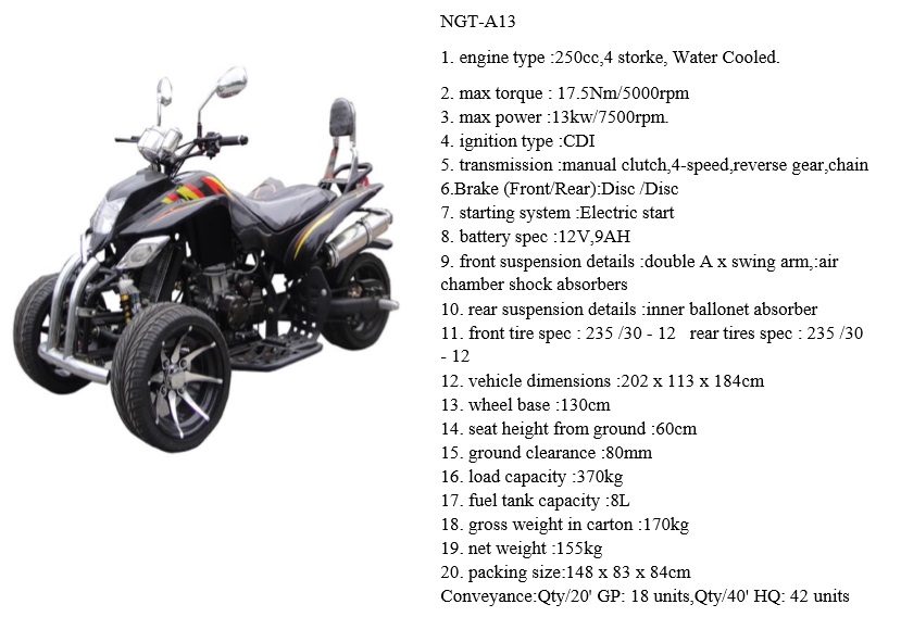 An all-terrain vehicle, also known as a quad, three-wheeler, four-track, four-wheeler, or quadricycle, as defined by the American National Standards Institute is a vehicle that travels on low-pressure tires, with a seat that is straddled by the operator, along with handlebars for steering control. An all-terrain vehicle (ATV) is defined as a motorized off-highway vehicle designed to travel on four low-pressure or non-pneumatic tires, having a seat designed to be straddled by the operator and handlebars for steering control